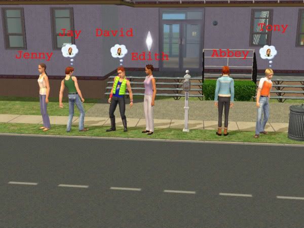 Ginger moved in with Jason so ya know what happened to her. Ace finally made a friend and then married her and moved her in. She got pregnant on the last day. I moved Virginia out in the middle of the week after moving in Matthew who brought to the house a whopping $1 and nothing in inventory I was all worried he was like loaded and thinking he could get her a big house if I could find a way to separate the cash but he's just broke. The Love Machine was something that just happened. The girls had sex in the cars cuz that's what their dates wanted..and when I had trouble getting Vamsi pregnant I said what the hell let's try the car and boom first try we have chimes...go figure..and thus the legend of the love machine was born. I will prolly carry this theme thru a couple houses... Get used to that ugly little car.. =-)